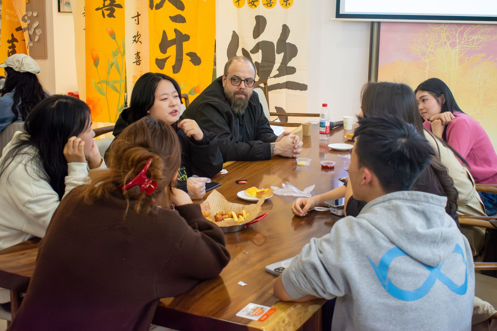 活动伊始,外教Kay以几个轻松而贴近生活的问题点燃了现场气氛,引导同学们分享对室友的“第一印象”、寝室里最独特的三件事、以及寝室生活带来的种种益处。大家在欢声笑语中开启了讨论。