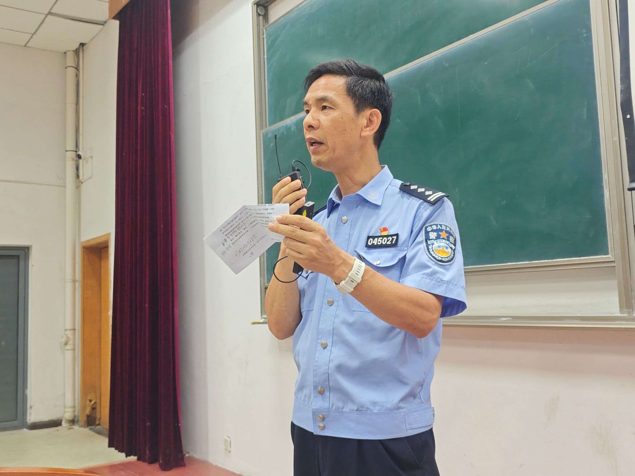 曹警官以“校园常见风险与防范”为主题,围绕财产风险、人身风险及责任风险三个维度展开系统讲解。在财产风险板块,他结合真实校园警情,剖析盗窃、诈骗、遗失及上门推销等典型案例,提醒新生妥善保管贵重物品,警惕“高收益、零门槛”刷单陷阱,及时备份身份证件并规范挂失流程。在人身安全风险板块,他针对校内外交通环境、火灾溺水隐患、打架斗殴及心理适应等问题,倡导新生遵守交通法规、远离危险水域、理性化解矛盾,并主动利用公司心理资源维护身心健康。在责任风险板块,他重点解读校纪校规、学业管理、网络言行等制度红线,强调“网络并非法外之地”,要求新生自觉做到不造谣、不信谣、不传谣,共同营造清朗网络空间。
