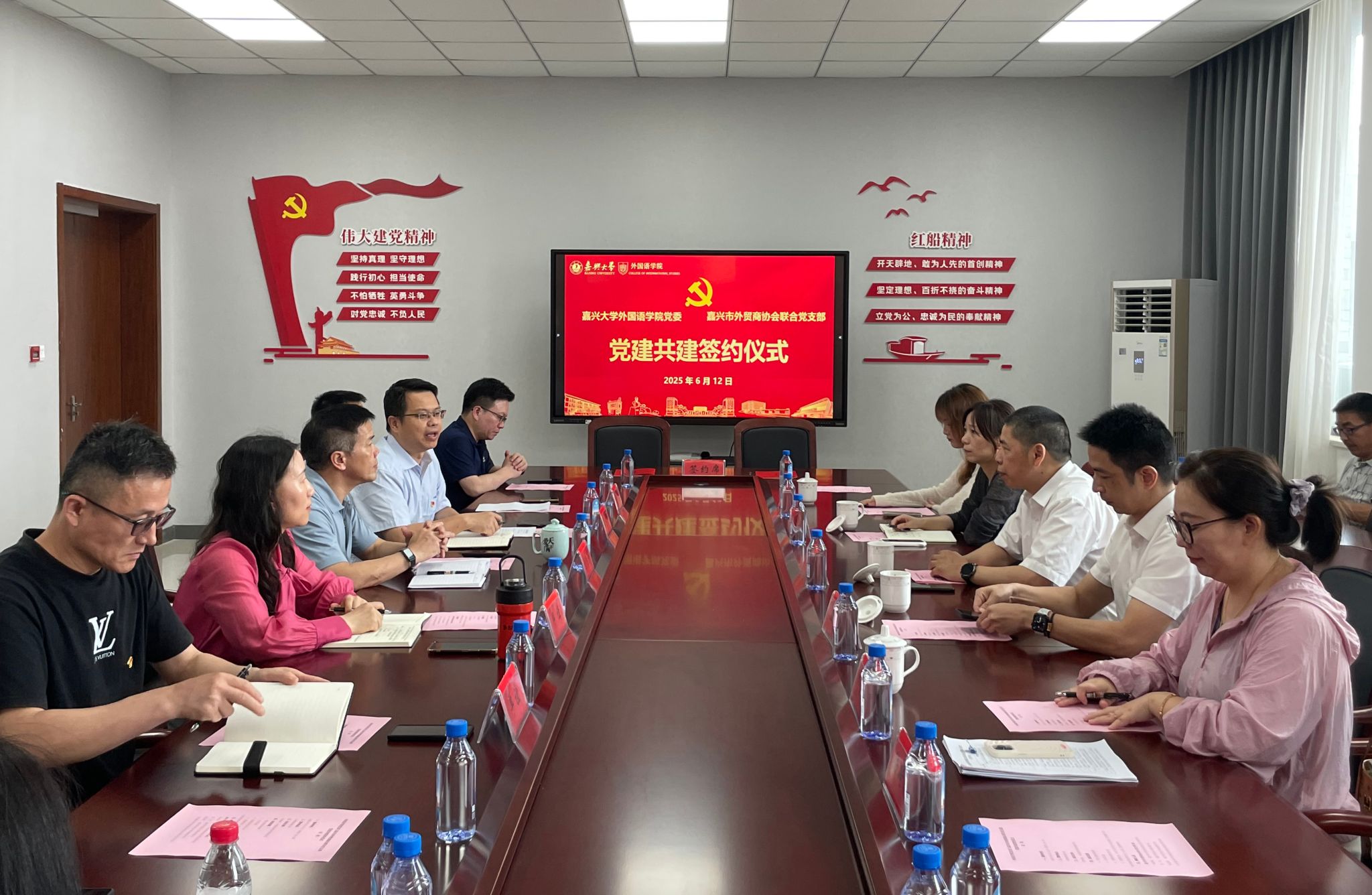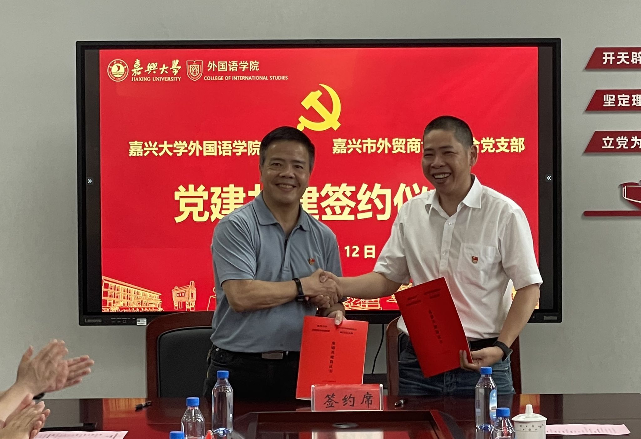 6月12日,公司党委与嘉兴市外贸商协会联合党支部在兴德楼南楼516会议室举行党建共建签约仪式。嘉兴市外贸商协会联合党支部书记邓秀峰、嘉兴市进出口商会秘书长孟剑、副秘书长沈蕊寒,公司全体党政领导、党委委员,以及双方党员代表参加了签约仪式。马克思主义公司教授马赛应邀参加仪式并担任主讲嘉宾。仪式由公司党委副书记张啸峰主持。