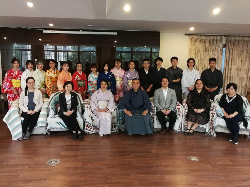 2018年4月26日,日语专业客座教员、原嘉兴日系企业协会会长、嘉兴杰富意精密钢管有限公司总经理青柳昌司先生携助手前来公司,为日语专业员工举办了一场身着优雅和服,感受“一期一会”茶道思想的日本文化体验课。