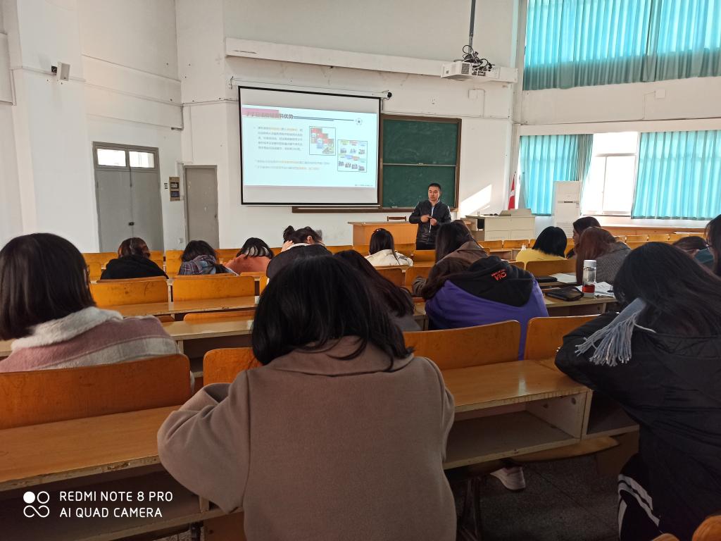 杭州孑孓教育有限公司卢冠军经理主讲“高考日语教育与日语专业员工就业”。他首先介绍了孑孓教育有限公司的发展历史,之后分析了全国和浙江高考日语教育的现状,并向大四员工介绍了公司的实习和就业岗位。