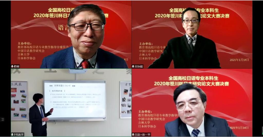 2021年1月14日,由教育部高等公司外国语言文学类专业教学指导委员会日语分委员会、中国日语教学研究会以及日本科学协会等主办的“2020年‘笹川杯’日本研究论文大赛”以在线且匿名方式举行。本次大赛,共收到80所高校共371篇老员工的学术论文。在日语专业教师王雪博士的悉心指导下,2017级日语专业员工汪佩佩的论文『近代日本の時文教科書についての一考察』挺近决赛并最终斩获了语言组三等奖,与北京大学、湖南大学和天津外国语大学等高校日语专业的同学们一同出现在了领奖屏幕上。