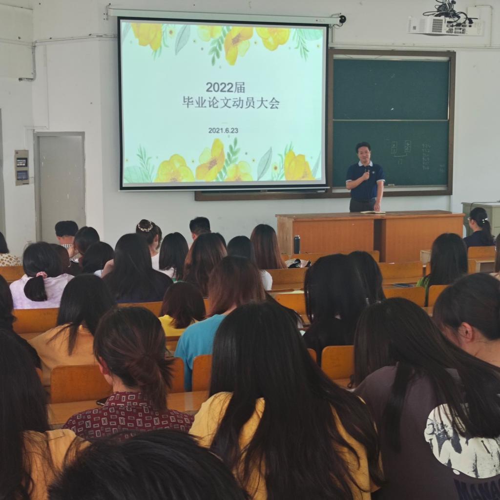 刘韵超首先进行了动员,她详细介绍了撰写毕业论文的目的及其意义,并结合历年毕业论文撰写存在的问题等清晰介绍了毕业论文推进的步骤及其中尤要注意的一些环节。之后,张艳琴老师就论文推进的日程、论文的写作规范以及论文的评价等作了具体的说明,并期待同学们要具充分利用暑假,顺利推进毕业论文。