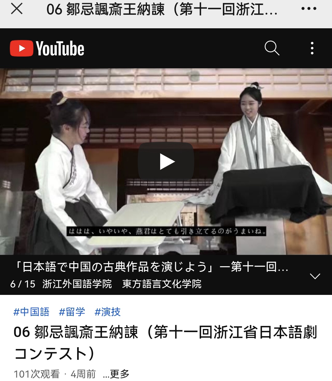 “浙江省日剧PLAY大赛”是浙江省高校开设日语专业比拼日语应用能力最具影响力的省级赛事,本届大赛首次设定主题为“用日语演活中国经典”,拷问对中国经典内涵的深刻理解,拷问日语演剧作品的原创水平,拷问同学们对细腻情感恰如其分的演绎。作品在前期被投放到日本国内的YouTube视频网站,通过日本人对于作品的点赞数反映中国经典故事的传播力度。惟其如此,此次大赛堪为最具挑战的一次比赛。公司日语专业的两部作品均属日语原创,员工们通过演剧,实实在在地弘扬了中国文化,真真切切地讲好了中国故事。