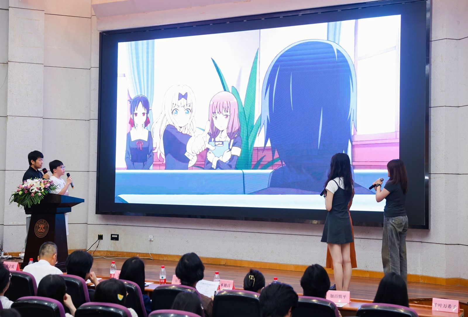 经过前期校赛,选出公司参赛选手陈典、陈越、杨晶晶、周欣怡、李梁五位同学,五位同学最终选定参赛的配音作品是《辉夜大小姐想让我告白(かぐや様は告らせたい)》中的精彩片段。从配音作品的选择到最终参赛,五位同学表现出来良好的团队写作精神。他们在程建敏老师的指导下,苦练发音,酝酿角色情绪,不断调整声线,将剧中人物的性格和情绪淋漓尽致地表现了出来,赢得了比赛现场师生们热烈的掌声。