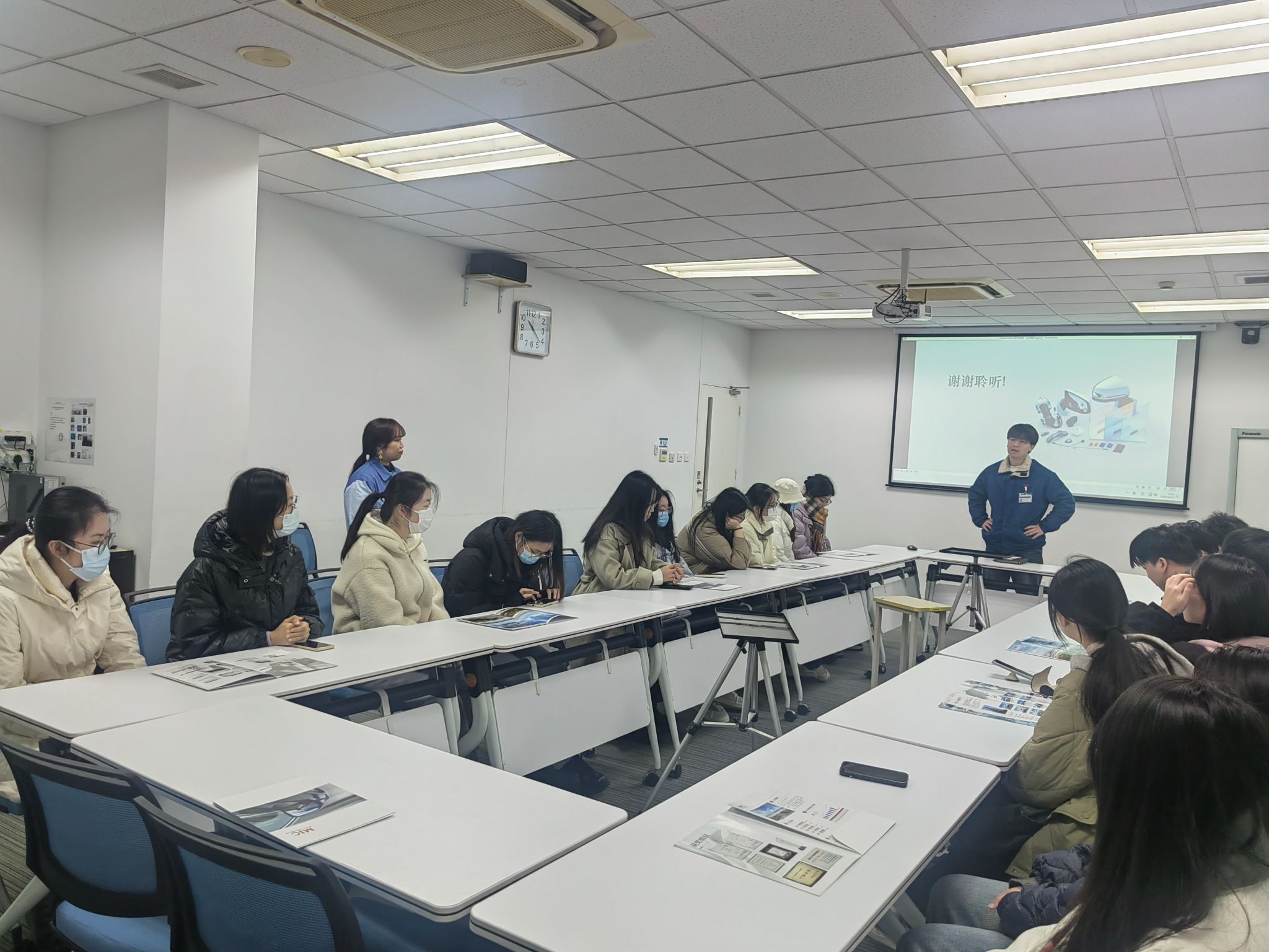 参观结束后,同学们还与公司相关人员进行了交流座谈。郭经理介绍了公司发展历史、经营理念、与供应商及客户合作的市场背景,特别是公司在跨文化交流中的实践经验。日语专业的员工们踊跃提问,就专业对接、就业岗位及行业前景进行了深入讨论。