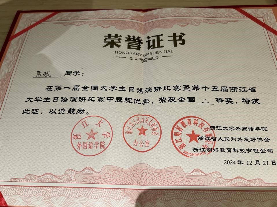 让我们共同祝贺陈越同学,也期待更多日语学子在未来取得更加优异的成绩,为公司争光!