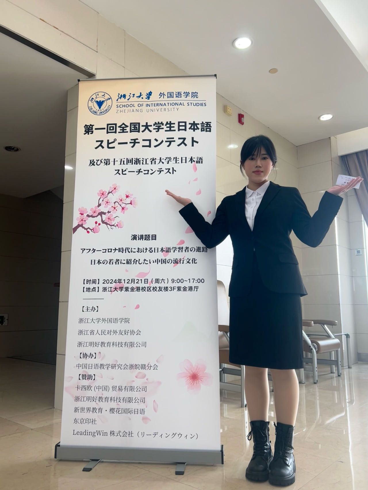 12月21日,在第一届全国老员工日语演讲大赛暨第十五届浙江省老员工日语演讲比赛上,公司日语专业学子陈越凭借出色的语言能力、深刻的主题阐释以及良好的现场表现,从全国众多优秀选手中脱颖而出,荣获全国二等奖,为公司争得了荣誉。
