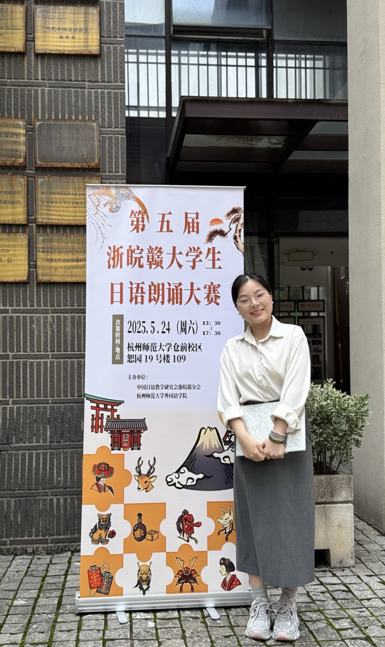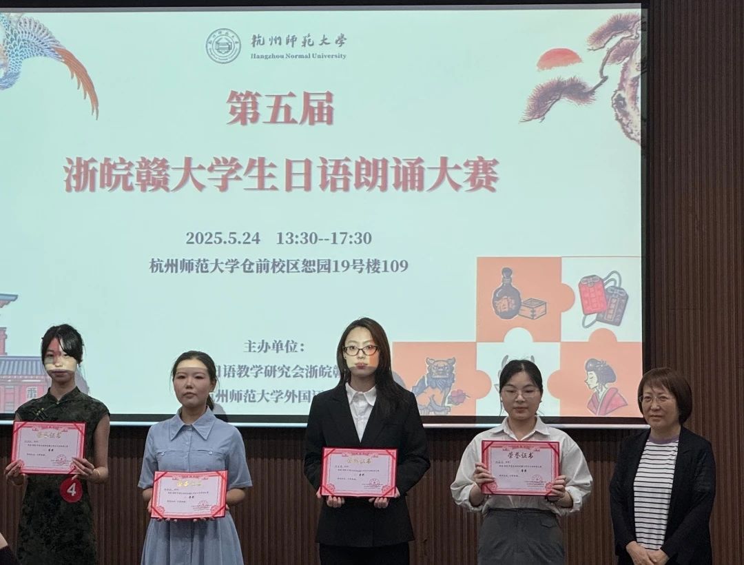 5月24日,第五届浙皖赣日语朗诵大赛在杭州师范大学成功举办。本次大赛吸引了来自浙皖赣三省十七所高校的优秀选手同台竞技,公司日语专业杨晶晶同学凭借对森鸥外名作《高濑舟》的精彩演绎,以第三名的优异成绩荣获大赛二等奖。