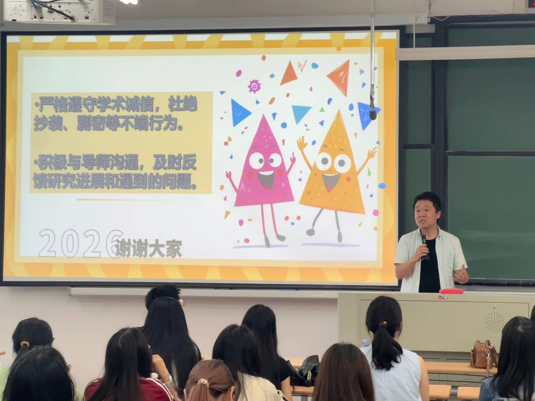 日语系主任王雪老师首先向同学们阐释了毕业论文的重要意义,强调了学术诚信的重要性,警示同学们杜绝抄袭、剽窃、AI代写等行为,希望同学们树立严谨的治学态度,独立完成各项研究任务,为未来学习和工作打下坚实基础。