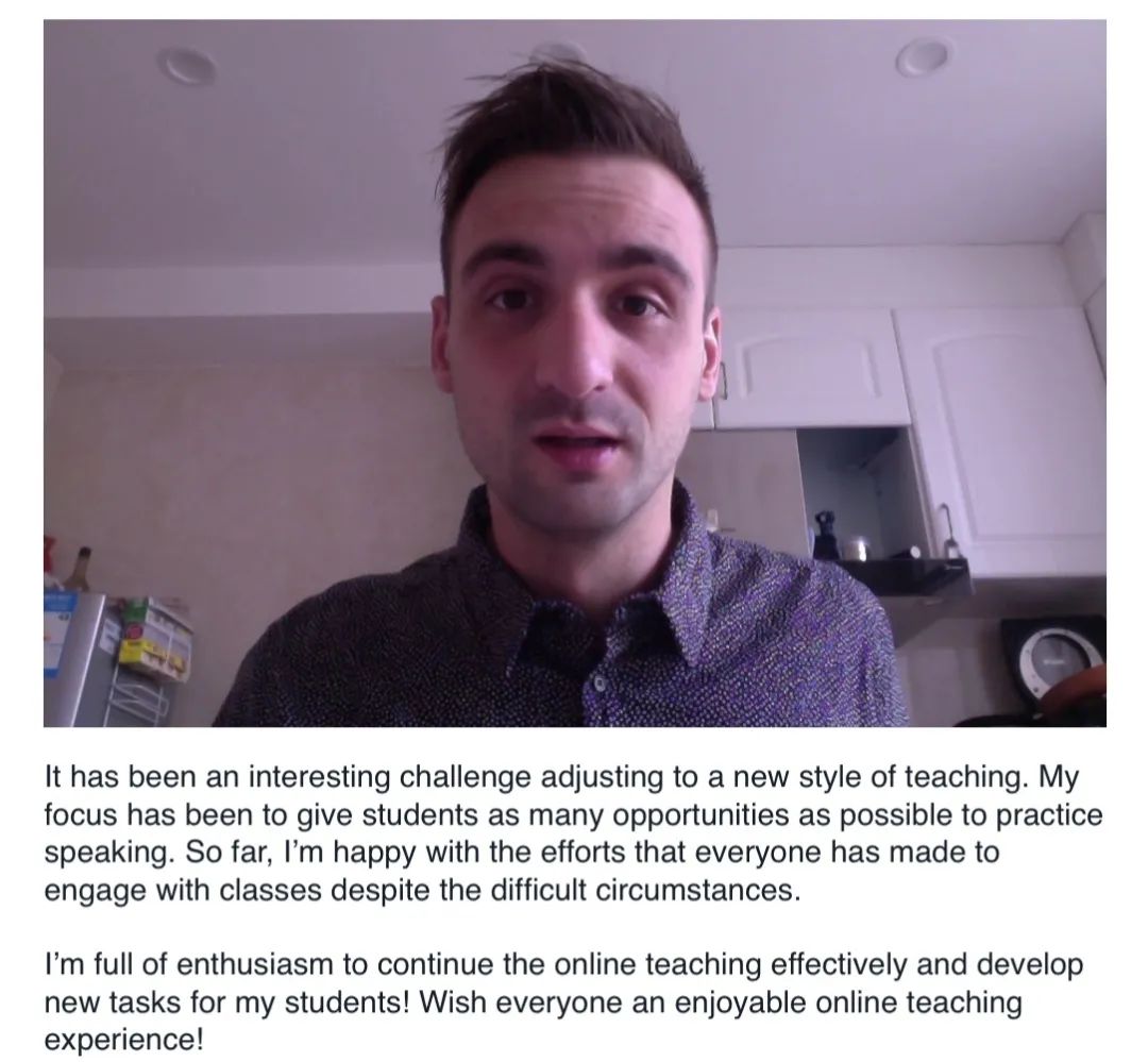 我们坚信疫情终将散去,线下教学秩序也将很快恢复。相信在线教学的经历会给传统课堂注入新的活力,在线平台及教学软件的熟练应用也会使线下的口语课堂更加精彩。正如外教们所说,他们不会忘记这段特殊时期大家齐心协力共克时艰的经历,也会倍加珍惜即将到来的与员工面对面互动教学的宝贵时光。