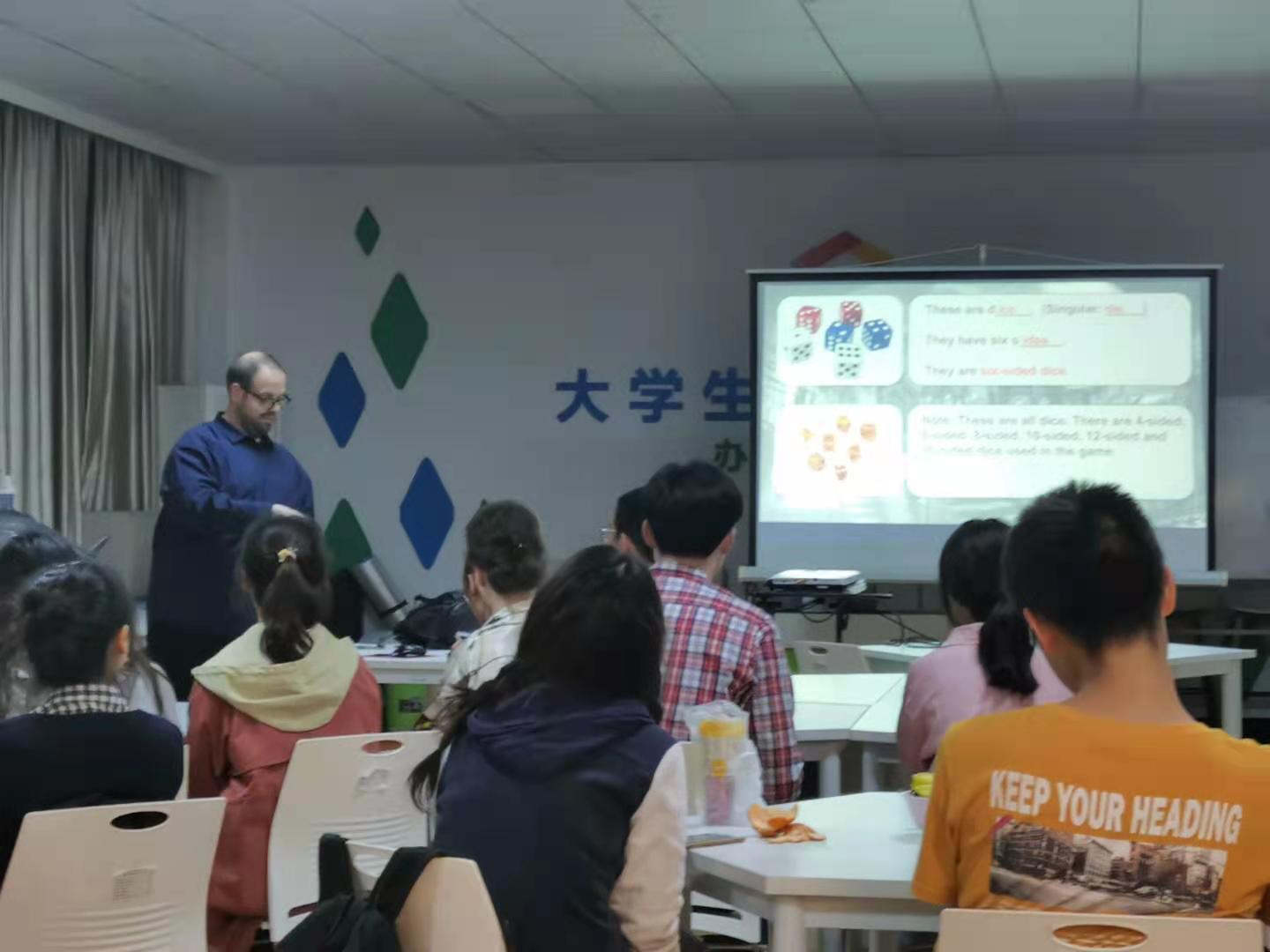 4月22日晚18:30,由304永利集团主办的本学期第二次外教沙龙活动于北区创业园一楼展厅顺利开展。本次活动主题为“Dungeons & Dragons:the history,the culture ,and the experience of the world's most famous table-top role playing game(龙与地下城:世界上最著名桌面角色扮演游戏的前世今生)”。以游戏这一大家感兴趣的话题入手,同学们在潜移默化中锻炼了英语口语,增长了西方文化知识。