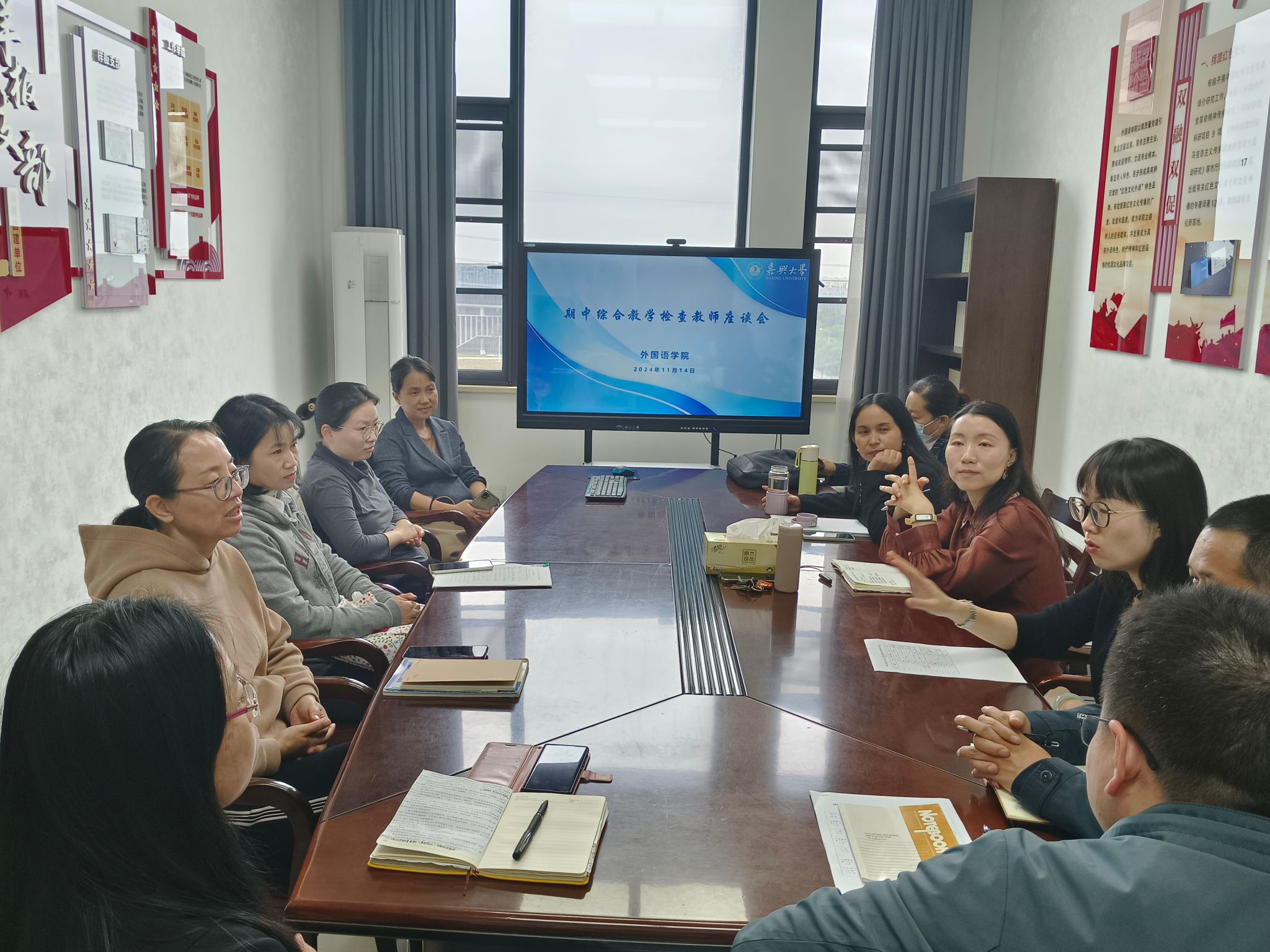 11月21日下午,在兴德楼南楼516会议室召开了期中教学综合检查反馈交流会,经理唐艳芳、副经理邱佳、公司督导组全体成员、各系部正副主任、各教研室负责人、骨干教师及教务办主任参加了会议。会议由副经理邱佳主持,她先通报了公司和系部检查抽查总体情况,并就师生座谈会上汇总的多方意见和建议与参会教师们进行了反馈和沟通。在集中评课环节,参会教师们从课堂呈现、师生互动、教学成效、教学组织实施等方面对5名教师的公开课进行了点评,并就员工课堂过度使用手机、平板电脑以及参与课堂互动意愿越来越弱这一普遍存在的问题展开了热烈讨论。副经理邱佳肯定了本次公开课教师们认真教书育人的良好精神风貌,指出应进一步深入思考在人工智能时代如何拥抱AI有效开展外语教学,进而提升员工的批判性思维能力和创造力。最后,公司督导组组长、经理唐艳芳作总结发言。他对本次集中教学反馈交流会给予充分肯定,他指出身处日新月异的AI时代,教师一方面要有危机感,教学设计、教学内容、教学方法都要创新;另一方面危机的背后也蕴含着机遇,人工智能技术和教学实践相结合不但能提高教学效果,还能极大地拓宽教师的教研、科研领域。希望广大教师调整心态,坚持反思与学习,不但要适应AI时代,更要做时代弄潮儿。