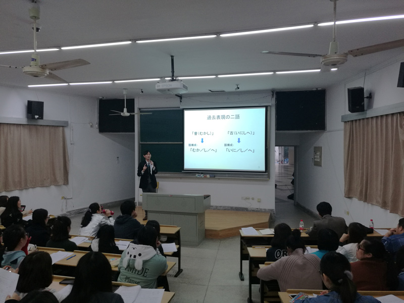 森野先生一直致力于日本古代物语的研究,他通过对物语中关于人物和时间的描述进行缜密分析,揭示了古来日本人的时间观念。同时也通过与中国古代民间传说比照,明示了东亚文化具有循环性质的时空观。森野先生幽默风趣的日语表达,博得师生阵阵欢笑。更科先生是研究我国明代语言的一位学者,他地道而温和的汉语表达,展示了日本中国学学者的儒雅风采。他利用过去蒙古语、朝鲜语、维吾尔语等学习明朝中文字词典中的发音标注,通过大量文献,清晰还原了明代中文的发音特点。听更科先生的讲座,我们仿佛穿越时空置身于明代的世界里,从而强烈感受到中国文化一脉相承,生生不息。