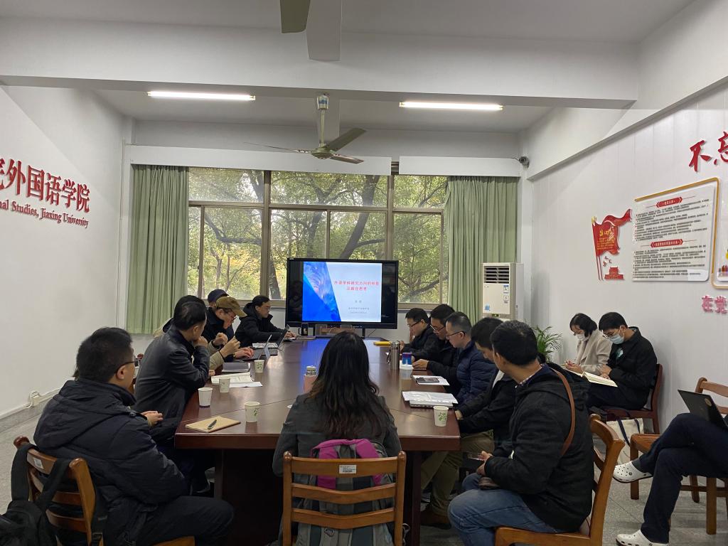 党的十九届五中全会提出要加快构建以国内大循环为主体、国内国际双循环相互促进的新发展格局,这是对“十四五”和未来更长时期我国经济发展战略作出的重大调整,是着眼于我国长远发展和长治久安作出的重大战略部署。肖博士强调,新发展格局下对接国家共建“一带一路”倡议,开展沿线国家的交流合作,加强“一带一路”沿线国家文化和文学研究,促进中国文化的国际传播,都需要外语学科提供强大的智力支撑和重要保障。比较文学与跨文化研究、翻译学、国别与区域研究跟“一带一路”、“中国文化走出去”以及加强中外人文交流等联系紧密,“外语+红色经典外译”、“外语+红色话语传播(话语体系建构)”、“外语+嘉兴文化外译”、“外语+国际关系(国别研究)”、“外语+政党研究(左翼政党研究、民粹主义研究)”、“外语+计算机、人工智能”等都是值得大家思考的外语学科转型方向。肖博士鼓励老师们结合自身实际情况,先评估后转型,积极参与浙江(嘉兴)中外政党研究中心建设,投身研究有关国家政党的最新发展动态、文化传统和特点、研究如何讲好中国共产党的故事、如何将红船精神与当地情况相结合等课题。