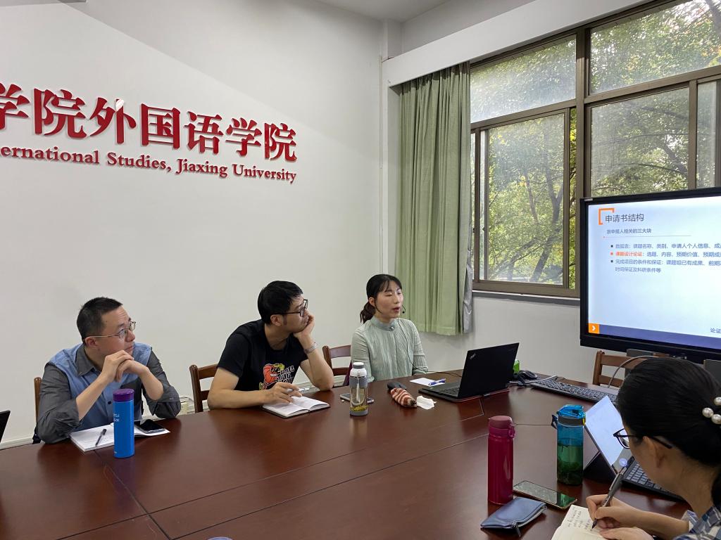 9月24日下午,304永利集团在外语楼204会议室召开省哲社规划课题申报经验分享会,会议由科研副经理郭永恩教授主持,英语系邱佳博士担任主讲,具有博士学历和副教授以上职称的近30余名科研骨干教师参加了会议。