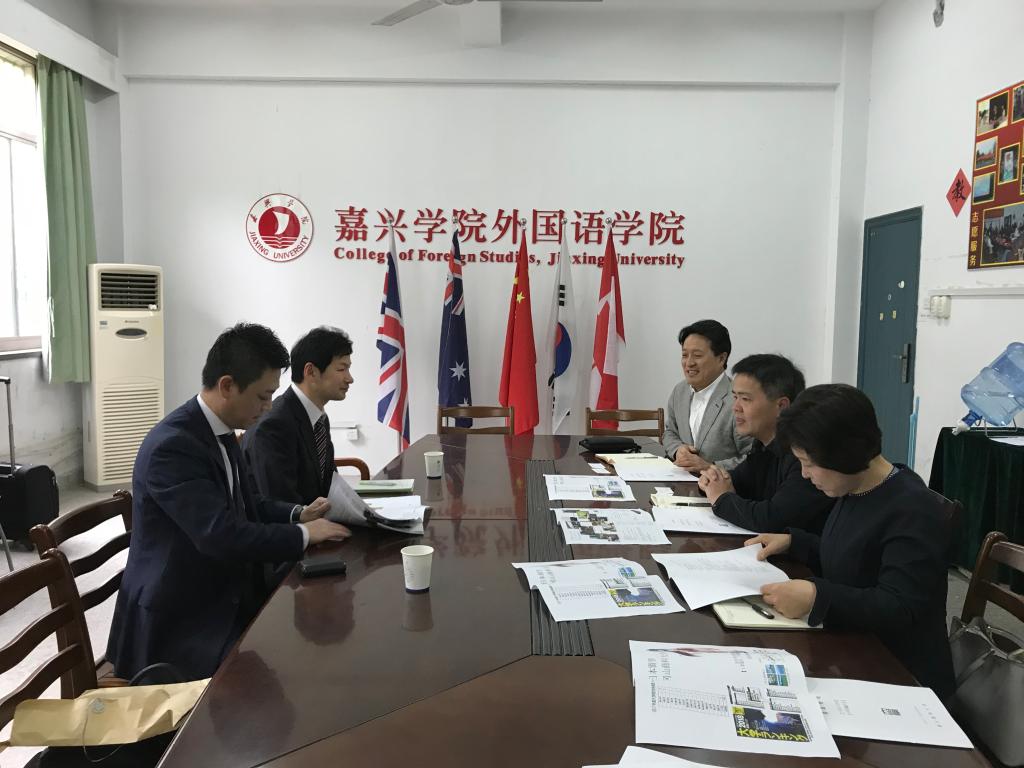 4月12日上午,日本冈山商科大学经营学部教授兼招生办主任大东正虎先生和业绩中心韩壮先生一行二人在国际交流处副处长李月顺和延梅花老师的陪同下前来公司,就今年度两校交流与公司唐艳芳经理、郭永恩副经理和日语系张艳琴副主任进行了座谈。