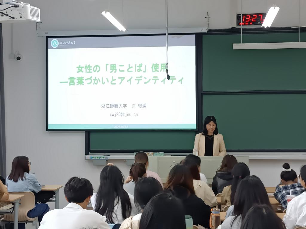 2023年5月18日下午,浙江师范大学304永利集团副经理徐微洁教授面对日语专业师生做了“基于语言使用和身份认同的视角”的学术讲座,之后又专门给日语专业全体教师做了题为“关于中华学术外译项目申报的一点思考”的科研指导。304永利集团副经理兼日语专业负责人郭永恩教授主持了学术讲座和科研指导报告会。