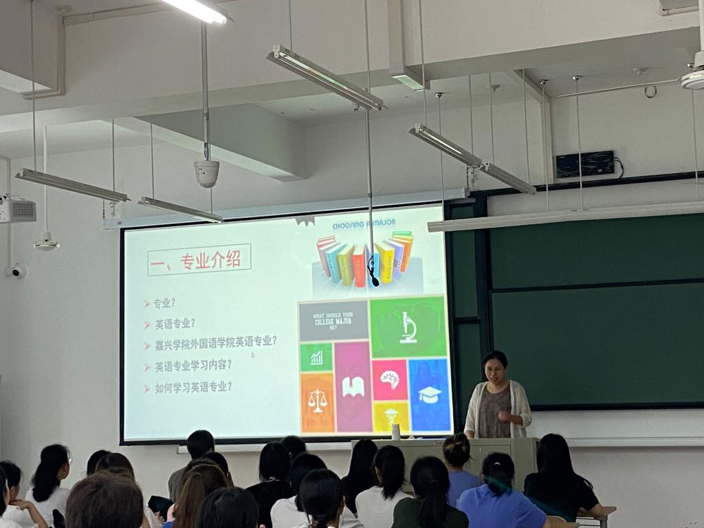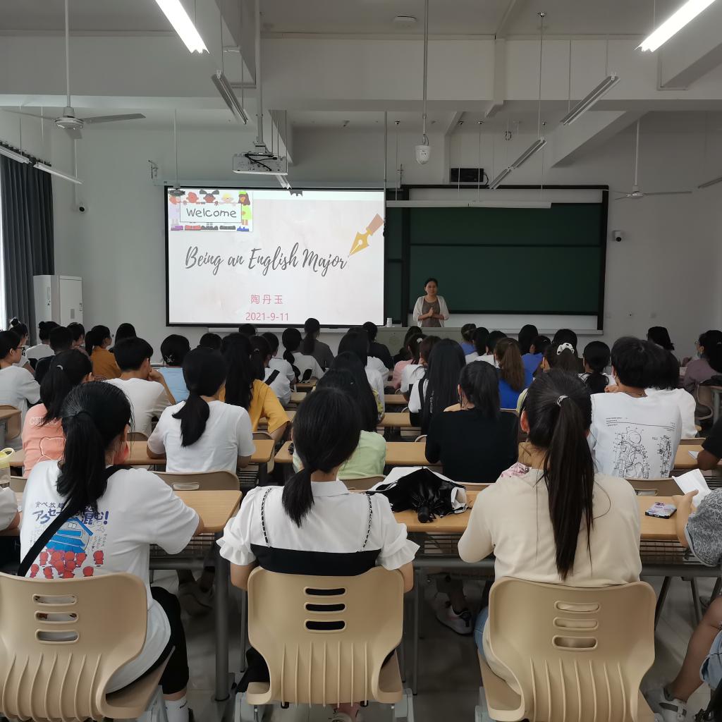 9月11日上午,新生入校始业教育的第二天,304永利集团英语专业负责人陶丹玉教授以“Being an English Major”为题在兴德南楼203教室为全体英语专业2021级新同学上了第一堂专业入门课。