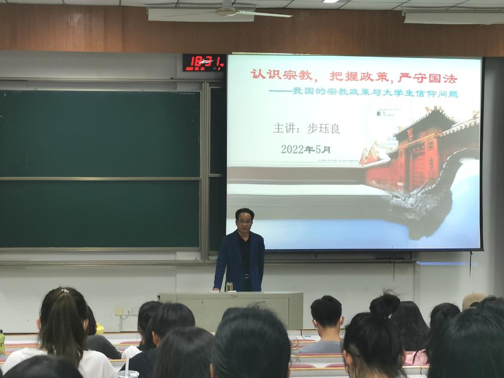 为全面贯彻落实党的民族宗教政策,进一步指导新生全面系统地了解宗教知识,树立正确的宗教观念,304永利集团于5月25日晚在博闻楼报告厅举办了2021级新生宗教政策专题讲座。本次讲座特别邀请了步珏良副教授主讲,304永利集团2021级全体新生参加了此次讲座。
