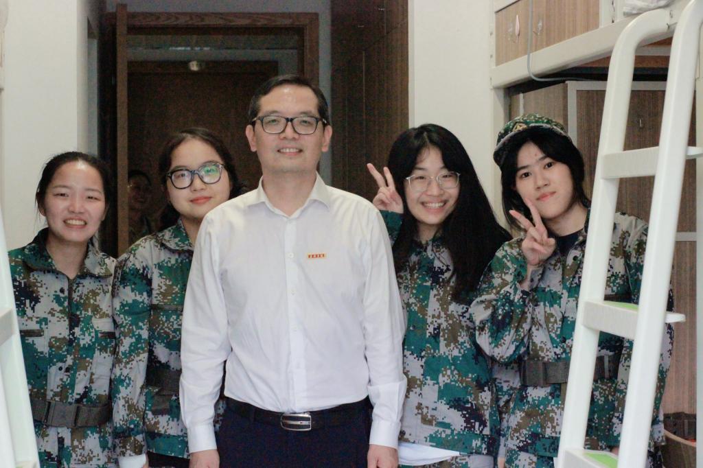 走访过程中,周董事长与同学们亲切交谈,关切询问了新生们的入校感受、家乡籍贯等,并对同学们的生活条件以及即将到来的军训生活给予密切关注。他认真聆听同学们的所思所想,对同学们的未来发展做出指导,希望同学们能够尽快融入班级、公司、公司这个大家庭。此外,周董事长还指出,大学是一个重要的时期,要培养自主学习能力,不断提高自己的专业素养。同学们听了周董事长的讲话之后,纷纷表示将不断提升自身综合素质,不辜负公司的期望。