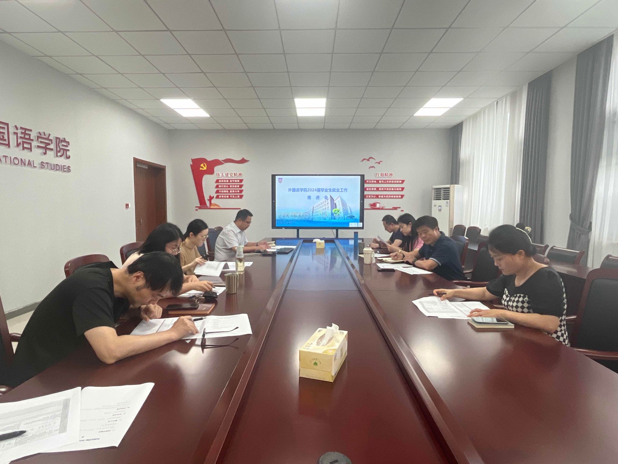 会上,张啸峰对近期就业工作推进进行了部署。班主任、辅导员就各班就业进展进行了交流。