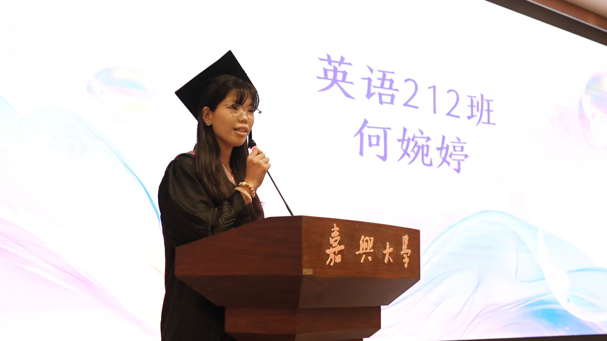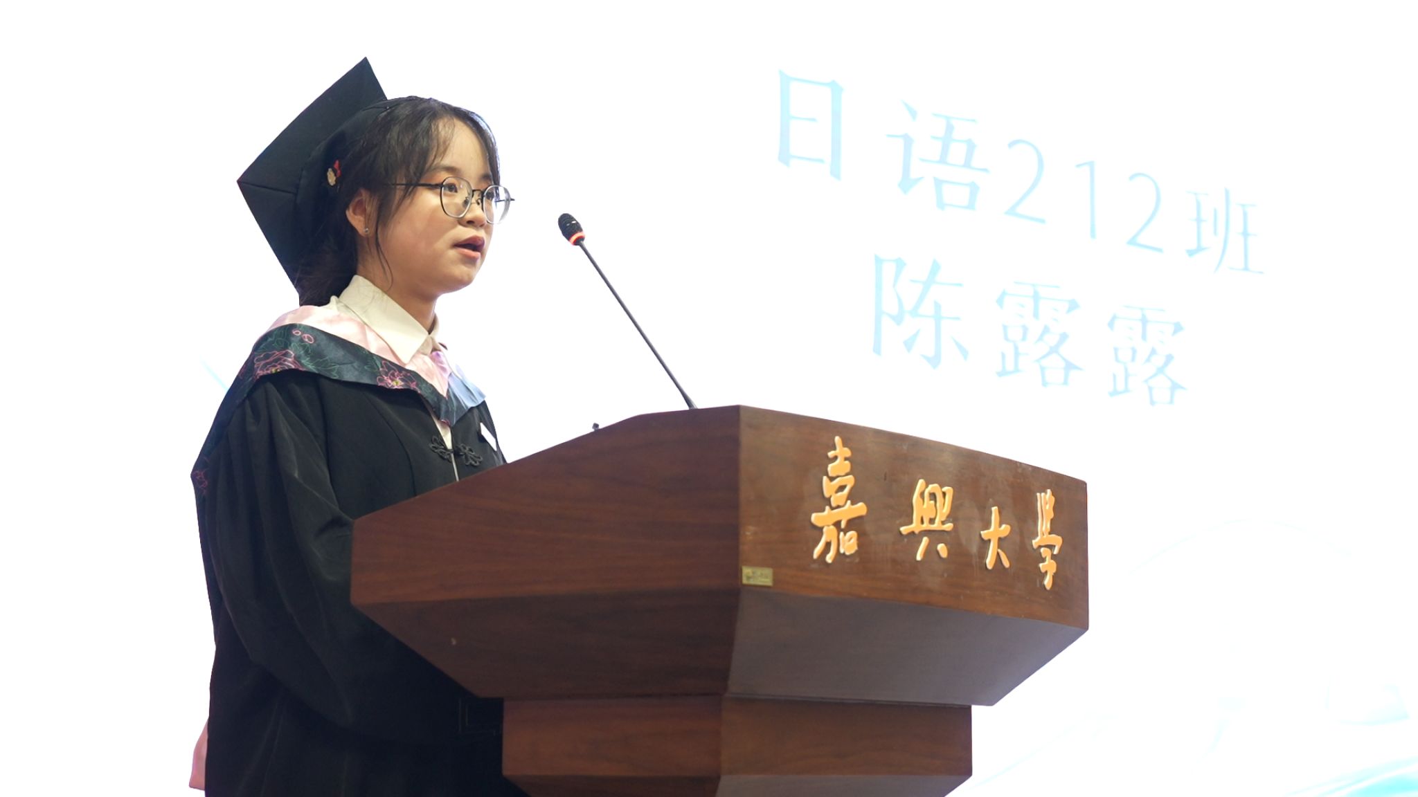 英语212班何婉婷同学和日语212班陈露露同学作为毕业生代表先后上台发言,表达了对母校、对老师的无限感激,也分享了对未来的憧憬与坚定信心,言语间充满了离别的不舍与昂扬的斗志。
