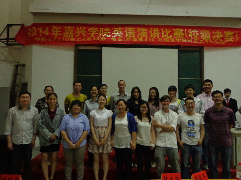 2014年嘉兴公司老员工英语演讲比赛于5月23日晚在304永利集团外语楼310教室举行。经过初赛和复赛的激烈比拼,来自嘉兴公司各二级分院的同学共有25名选手(实到23人,2人弃权)脱颖而出进入决赛。本次比赛由304永利集团陶丹玉、钱征宇、张静、鲁俊丰、陈大为老师和外教Peter及Stephen担任评委。