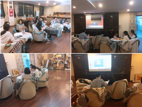 随后,到场人员分为了三组,一起观看了习近平总书记系列讲话的视频。视频结束后,每组各自讨论视频内容与资料,最终由小组代表进行感想交流。活动中,同学们积极参与。严肃而不失活泼的现场气氛彰显了青年学子深刻的思想认识以及积极向上、锐意进取的精神风貌。