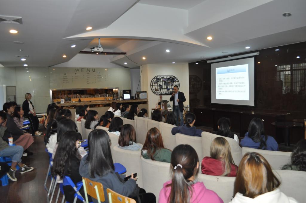 王友军在讲座中现身说法,用自己一波三折的创业之路鼓励同学们作为语言学习者在大学期间能够触类旁通,时代向当代老员工提出了“复合型人才”的要求,“复合”不是简单的技术相加,我们应时刻注意在学习和实践中培养一种融会贯通的能力和素质。学习好外语有助于了解国际前沿咨询,把握行业的最新发展趋势,从而在职业的选择上就具备和传统不一样的视野。掌握一门外语意味着更快并更多地摄取有效信息,敏锐地处理和解决问题 ,从而获得更广阔的发展空间。另外,不管在任何时候都要勇于承认自己的错误,正视自己的不足,机遇就在转角,等待着有准备的人。当然,选择创业也需做好充分的思想准备来迎接各种难于预料的困难。此外,王又军还强调了健康的重要性,认为学习的同时应兼顾运动,保持一个健康的体魄去进行持久的奋斗。