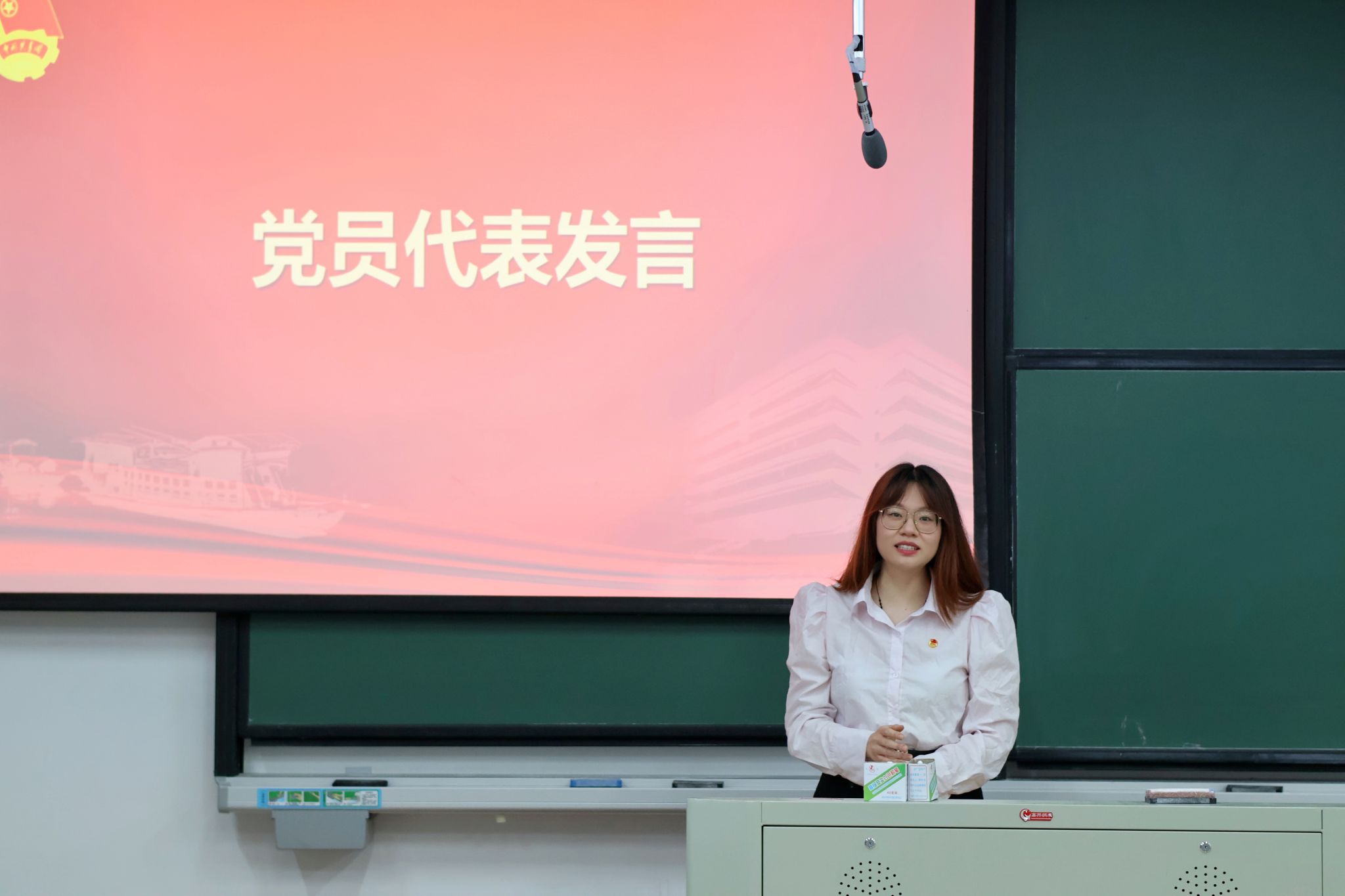 员工团委副书记王艺颖宣读了新发展团员名单,吴琳轩为新发展团员代表佩戴团徽,英语232班林若兮作为领誓人带领新发展团员在团旗前郑重宣誓,表达决心和信念。优秀团员代表英语232林若兮、新团员代表日语231王梅分别在会上发言。