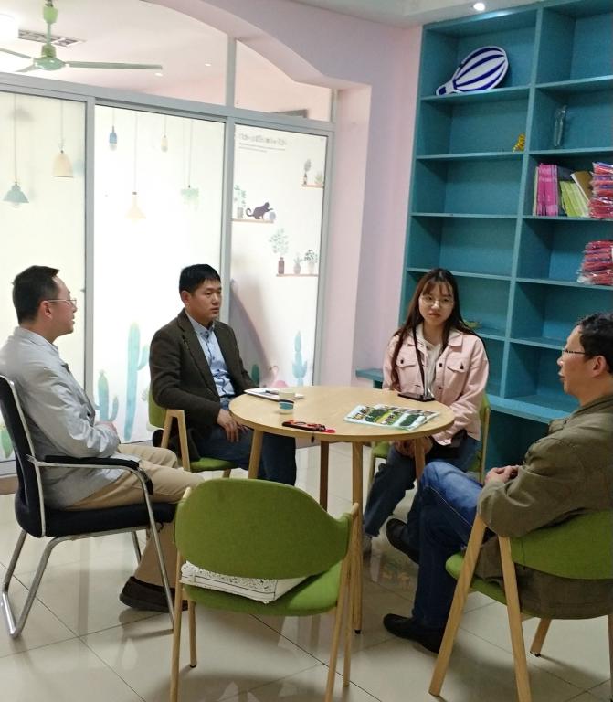 英语系支部党员教师们分别走访了位于嘉兴市秀洲工业园区的凯亚纺织有限公司和嘉兴南湖区的嘉兴伯仑信息科技有限公司等四家企业,以及奔奔鸟•随天培训金都佳苑校区和麦吉少儿英语两个教学培训机构。党员教师们参观了员工的实习场地、公司展厅等,听实习员工讲述了他们的实习体验,企业领导向我们介绍了公司情况、实习生的总体工作状况,对公司实习员工的工作态度和综合素养给于了高度评价。同时,企业人士还根据近年来所接受的实习员工总体状况对嘉兴公司的本科人才培养提出了有益建议,表示非常欢迎公司能输送更多优秀学子去企业实习和就业。