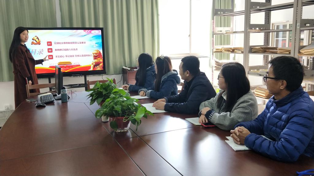 为全面贯彻习近平总书记新时代中国特色社会主义思想和党的十九大精神,12月18日下午,公司教工第三支部在外语楼205会议室开展了以“严明纪律、从严治党”为主题的党课学习活动。