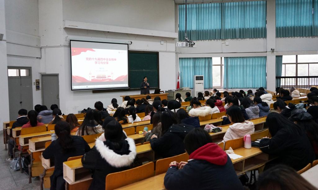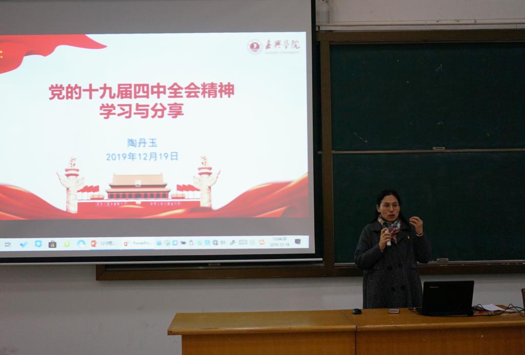 2019年12月19日下午,304永利集团在外语楼310进行了一场面对员工的党的十九届四中全会精神宣讲会。主讲人是公司党委书记陶丹玉,参加听讲的员工包括外院全体员工党员、入党积极分子和各班普通员工代表近200人。