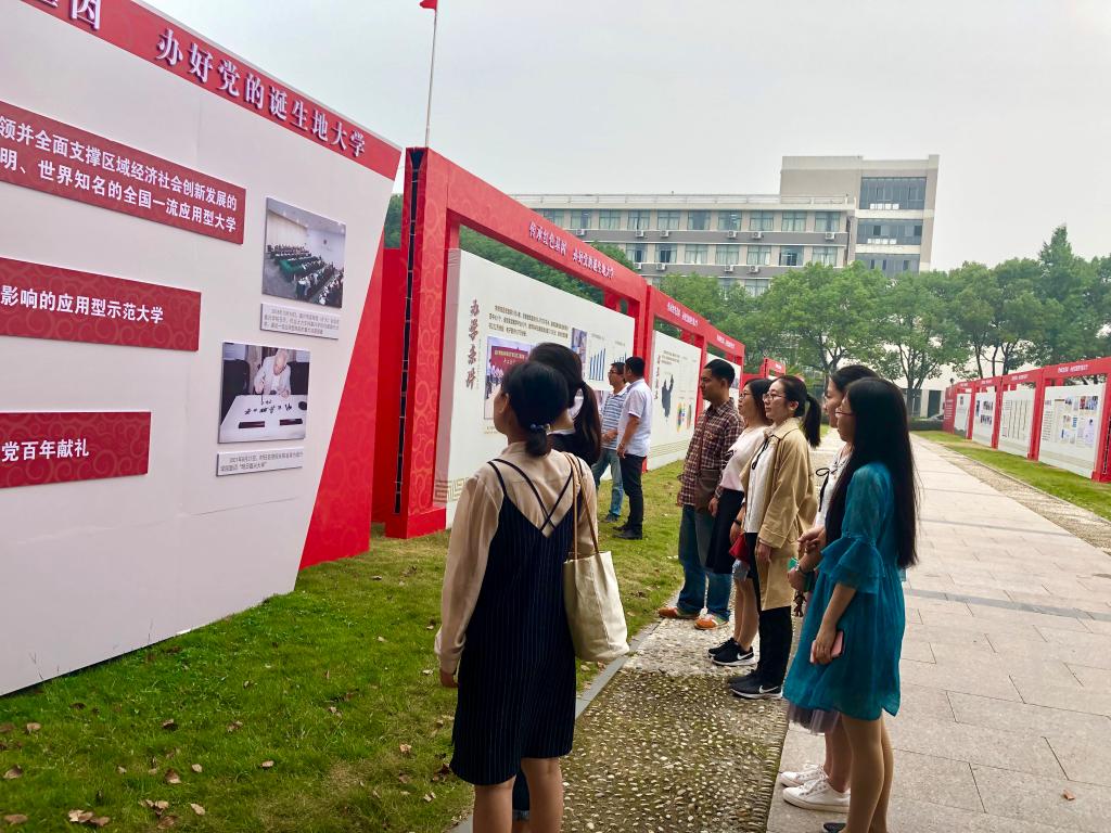 最后,孙玉慧带领党员们到越秀校区文化广场观看了“公司发展史与展望——传承红色基因,办好党的诞生地大学”展览。