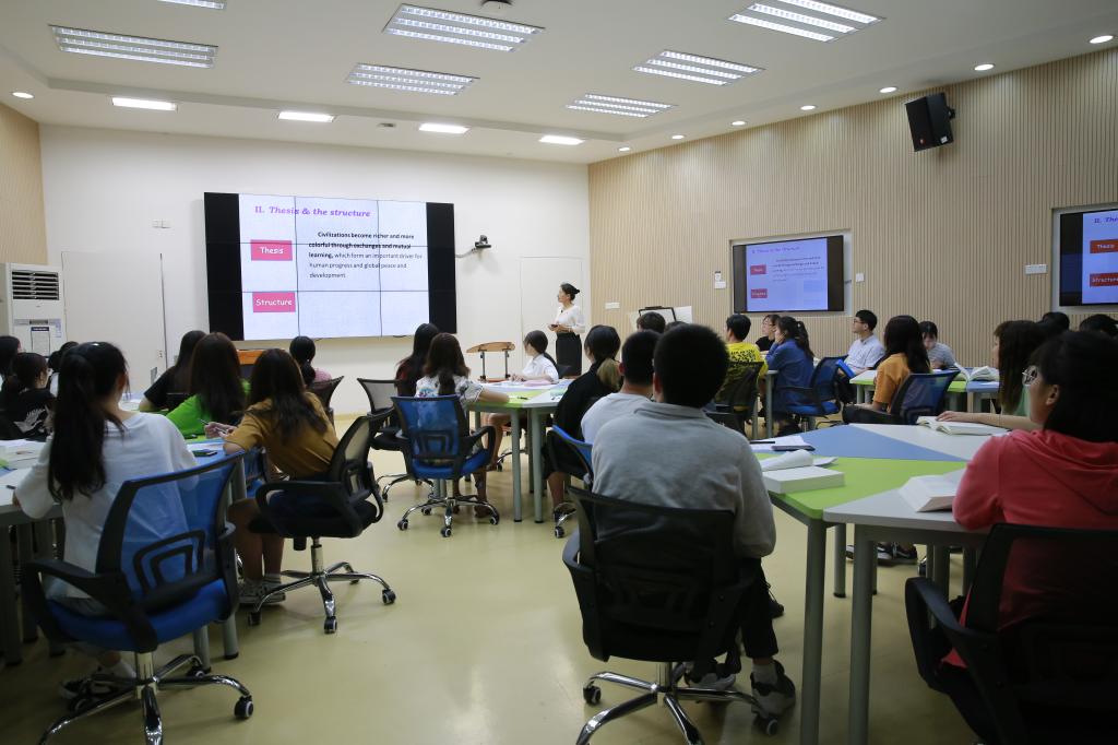 本次读书研讨会采用分享与研讨的方式进行,全英文交流,党员教师通过《习近平谈治国理政》外文版本的课堂导读,引导员工围绕主题学习闪耀马克思主义哲学光辉的理论创新成果。公司党委书记陶丹玉围绕“文明因交流而多彩,文明因互鉴而丰富”的主题为员工生动阐述了文明多彩、平等、包容的魅力所在,从多个角度展现文化自信给一个国家和一个民族带来的更深沉、更持久的力量,激发了现场同学对文明多彩、平等、包容的多视角分享与感悟。党员教师边娜为同学们展现了“共同构建人类命运共同体”的壮阔蓝图,“善学者尽其理,善行者究其难。”教工第三党支部书记鲁俊丰以“推动形成绿色发展方式和生活方式”的课堂主题,循序渐进带领同学们走进绿色生态的大门,鼓励同学们培育和践行绿色文化的自觉性。