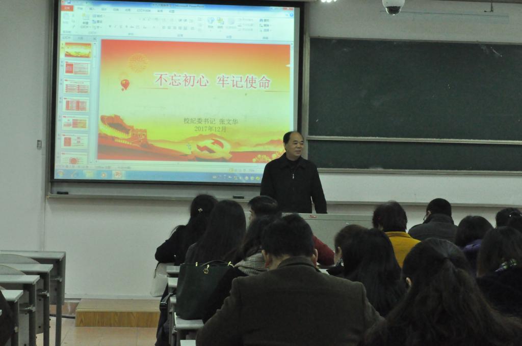 12月14日下午,304永利集团在教一139举行政治理论学习会,校纪委书记张文华应邀为公司全体教师作党的十九大报告宣讲。宣讲会由公司党委书记陶丹玉主持,304永利集团全体教师参加宣讲会。