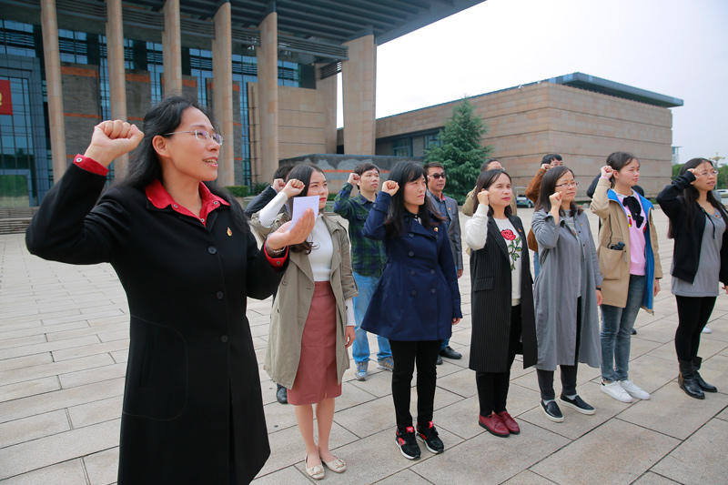 上午十点,师生们在南湖革命纪念馆,面对党旗,怀着崇敬的心情,在党委书记陶丹玉的带领下,庄重宣誓,重温了入党誓词。