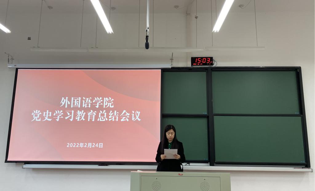 党委书记周钰作党史学习教育总结报告。她指出,自党史学习教育开展以来,公司党委根据公司党委的统一部署,按照“学史明理、学史增信、学史崇德、学史力行”总要求,精心组织、周密部署,以丰富多样的形式,彰显外语特色,赓续精神血脉,扎实推进党史学习教育,达到了“学党史、悟思想、办实事、开新局”的目标。她从六个方面总结了党史学习教育开展情况,一是加强组织领导,确保党史学习走深走实;二是用好红色资源,抓好特色品牌示范引领;三是丰富活动载体,推动党史学习入脑入心;四是聆听专题宣讲,深化理论学习;五是开展志愿服务,践行教育初心使命;六是发挥先锋力量,营造良好氛围。