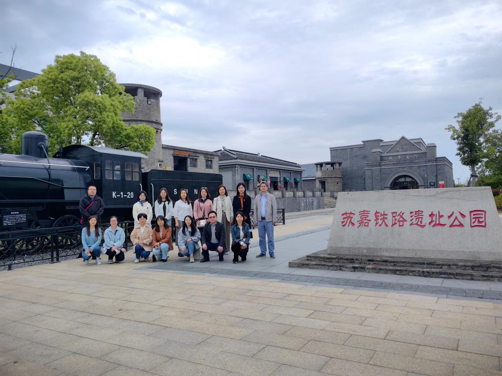 参观学习结束后,全体党员还来到了苏嘉铁路遗址公园,刻着“王江泾站”字样的文物石碑、复古的火车站房、蒸汽机车车头、碉堡群,把大家的思绪带回革命年代,共忆这段难忘的抗战历史记忆。