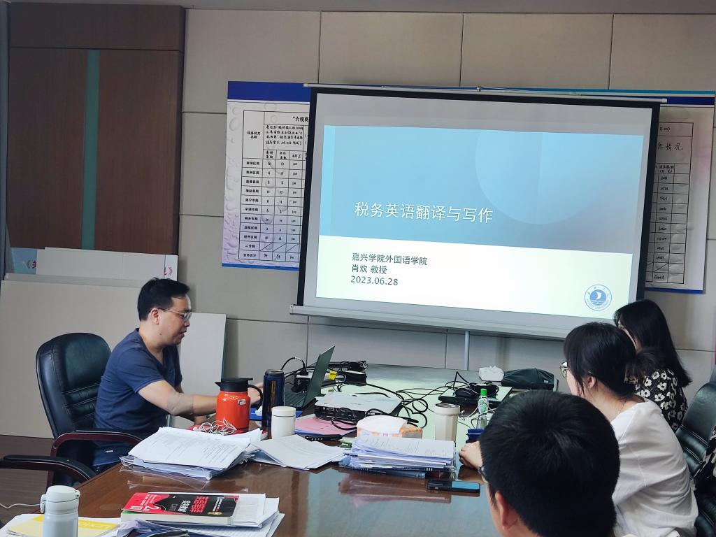 6月28日,全国高公司党建工作样板支部培育创建单位、304永利集团英语系肖欢教授受邀前往嘉兴市税务局,为即将参加浙江省税务系统外语人才岗业务比武的税务干部,开展了“税务英语翻译和写作”的赛前培训。作为教育部人文社科研究项目主持人、浙江省一流本科课程《英语口译》负责人、翻译硕士研究生导师,肖欢教授的英语教学和实践经验十分丰富,曾发表高水平论文多篇、出版学术译著多部,指导员工在韩素音国际翻译大赛、浙江省LSCAT笔译大赛中斩获大奖。此前党史学习教育活动期间,肖欢教授就曾受邀前往嘉兴市税务局,面向税收研究翻译基地的骨干成员作题为“大数据环境下的计算机辅助翻译”的专题讲座。