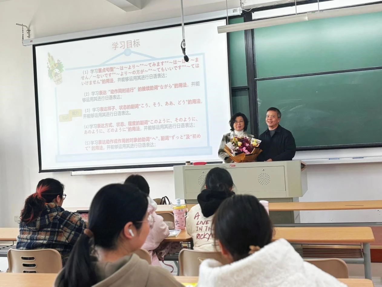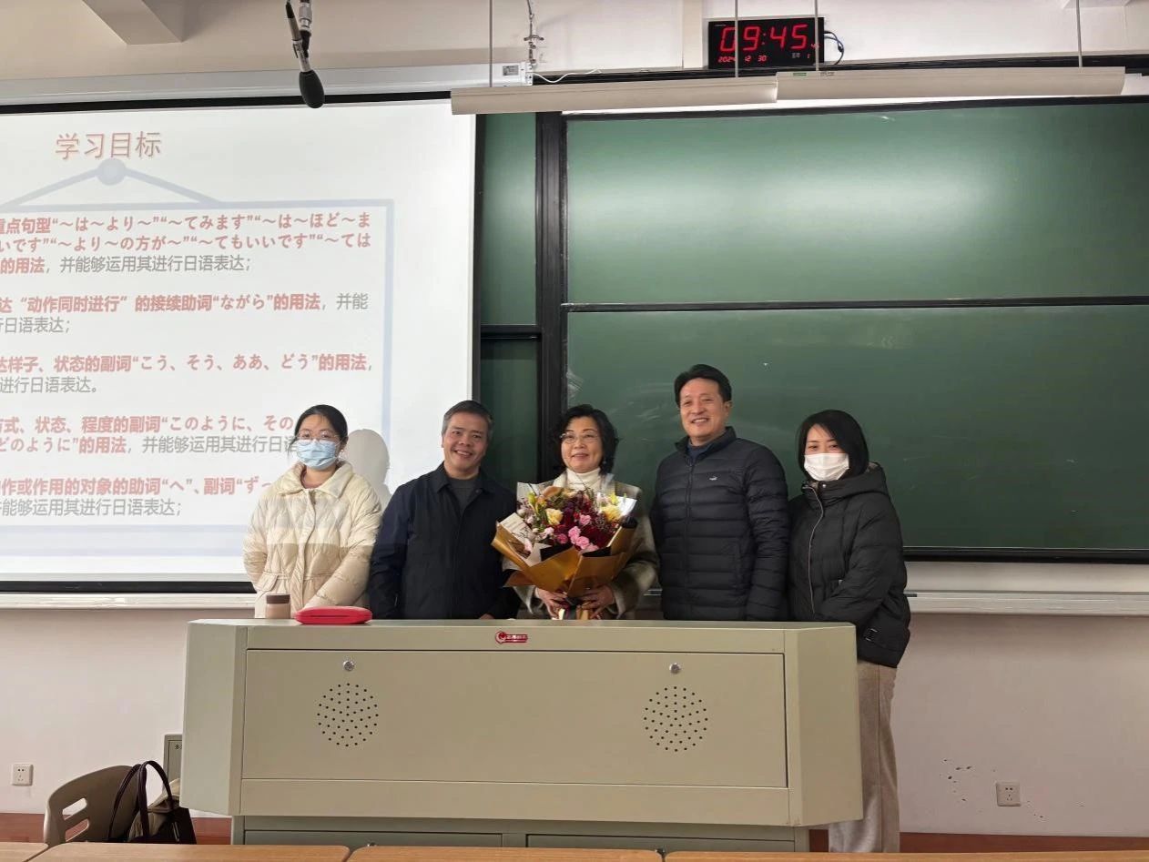 在304永利集团的讲台上,有这样一群默默耕耘的身影,他们将青春与热血奉献给了外语教育事业,如今即将告别熟悉的课堂,开启人生新的篇章。2024年12月30日,兴德楼南楼203教室里,上演了一幕感人至深的画面,公司领导亲自为即将退休的教师送上鲜花,在其最后一堂课上,致以最诚挚的敬意与感谢。