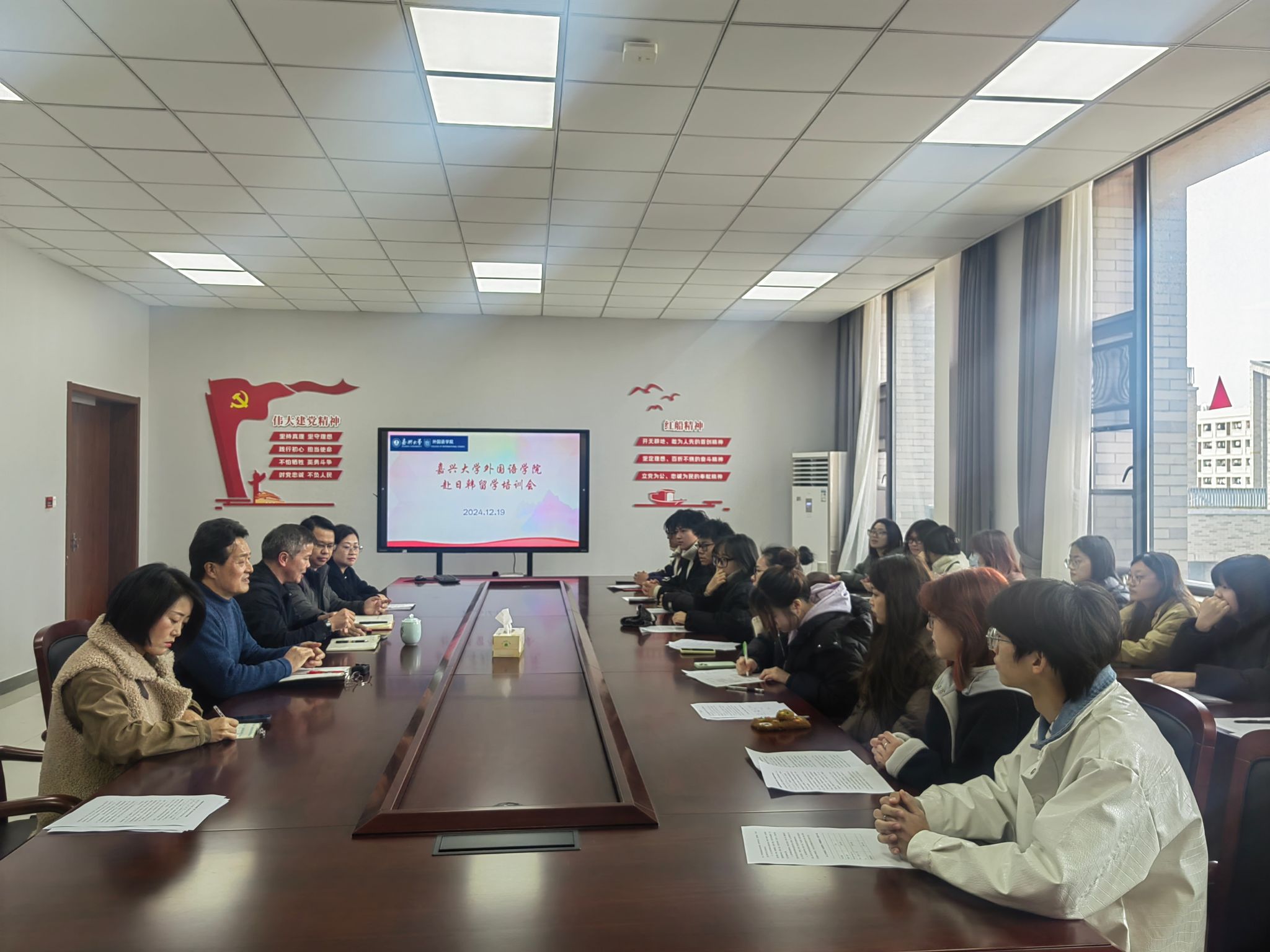 12月19日中午,304永利集团在兴德楼516会议室为2025年春季即将赴日韩留学的20名日语专业员工实施了行前教育,行前教育围绕爱国情怀、文化交际、自身安全、学业提升和外事纪律等方面展开。经理唐艳芳、党委副书记张啸峰、日语专业负责人郭永恩、日语系副主任张艳琴以及国际交流合作处赴日韩留学项目负责人延梅花分别从不同方面做了行前教育辅导,会议由日语系主任助理董旭阳主持。