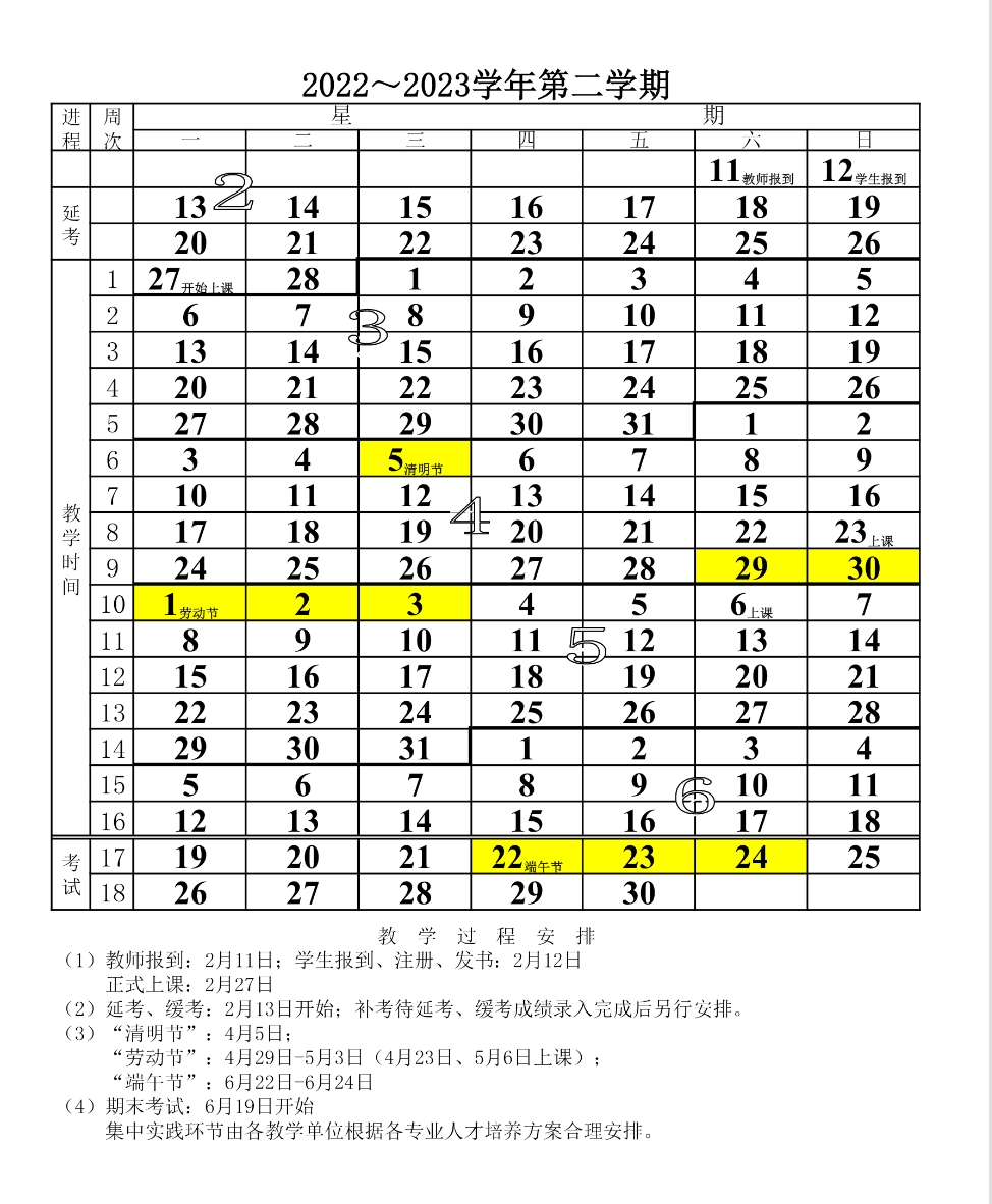 2、2月13日开始安排2022-2023学年第一学期期末考试(含缓考)。