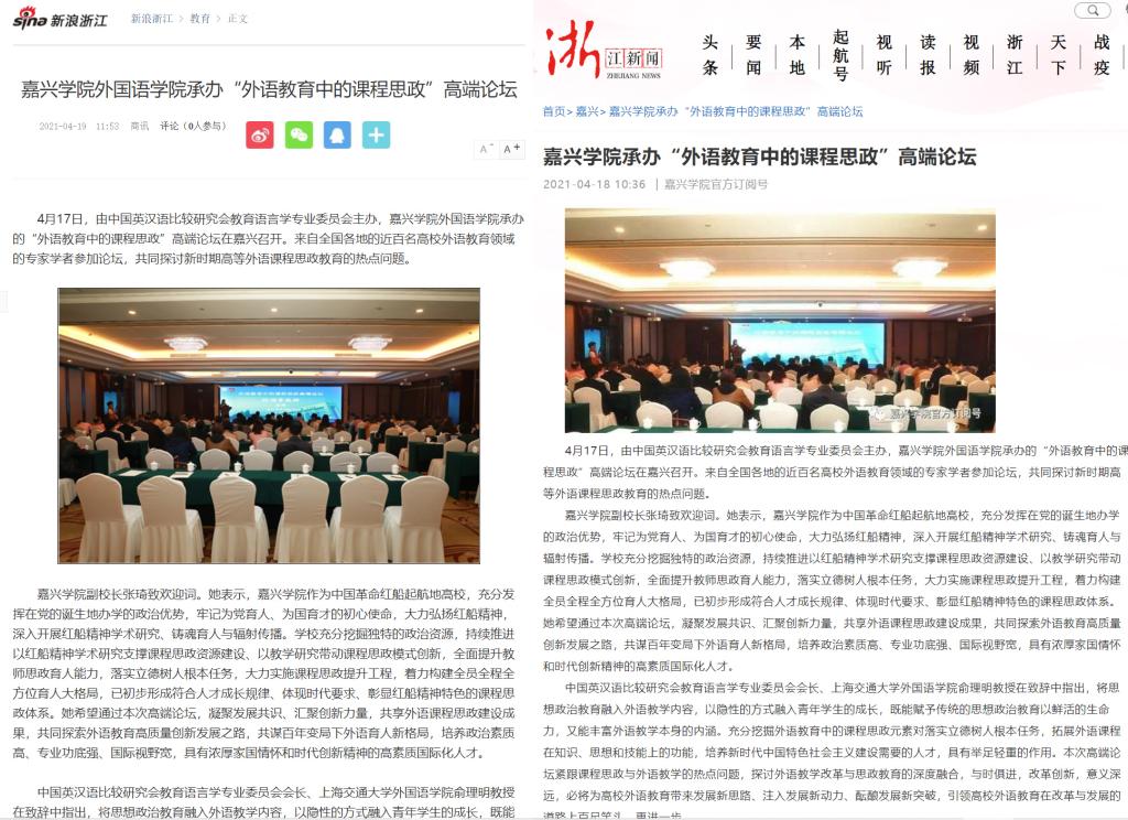 此次高端论坛受到省市级媒体的关注,新浪网、浙江新闻客户端、嘉兴日报、读嘉、嘉兴在线、嘉兴公司报、嘉兴公司微信公众号等多家媒体对此次高端论坛进行了报道。高端论坛的传播力、影响力进一步提升。