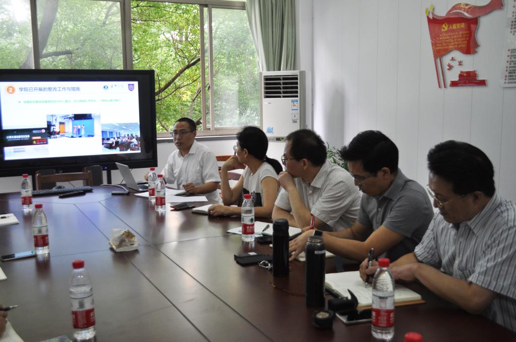 副经理喻锋平首先根据公司本科审核评估“回头看”的工作要求,汇报了公司在评估工作中发现的问题与不足、已开展的整改工作与措施、评估整改工作自查情况,重点介绍了公司今后在打造以“红船精神”为引领的外语专业特色人才培养体系、加强国际化教育、加大教学改革和课程建设等方面的工作举措。
