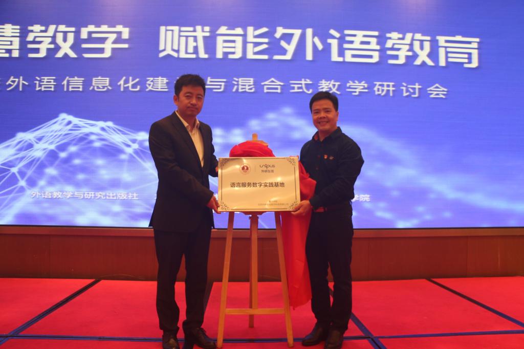 开幕式的另一项重要内容是外研社-嘉兴公司“语言服务数字实践基地”挂牌仪式。本次授牌,意味着外研在线与嘉兴公司在智慧教学实践、优质资源共建共享以及智慧教师发展等领域将开展全方位的合作,加大力度、扩大广度、提高精度,创新人才培养、科研组织和社会服务模式,促进外语教育质量不断提高,为嘉兴公司申硕创大提供强势助力。