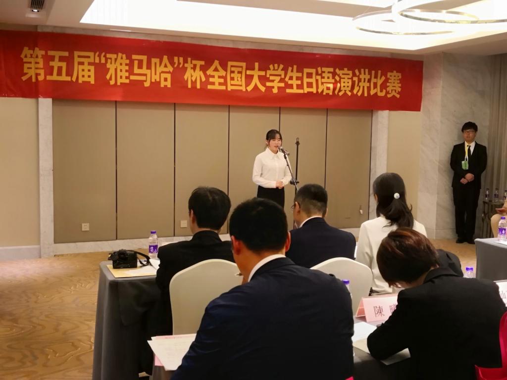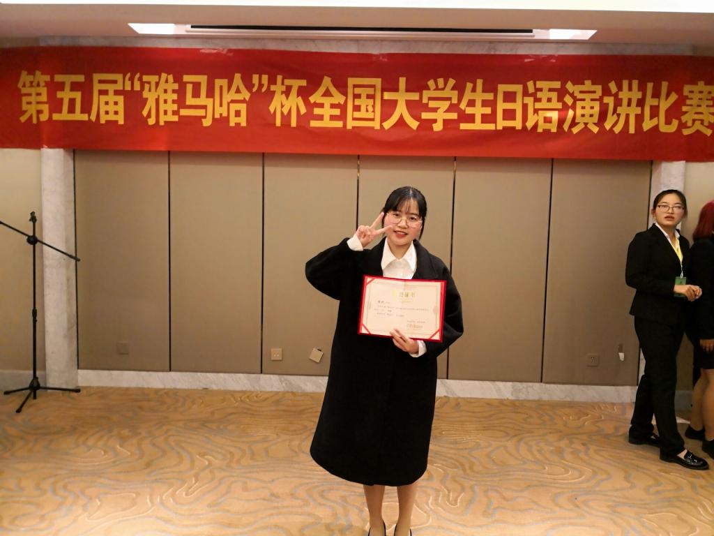 4月14日,公司日语专业2016级徐欢同学参加了由全国11省共42所高校日语专业员工激烈角逐的第五届“雅马哈”杯全国老员工日语演讲大赛,她一路拼搏,过关斩将,挺进决赛,并最终收获三等奖,与上海财经大学、浙江理工大学、东华大学和洛阳304永利集团等日语专业的同学并列站在了领奖台上。