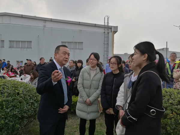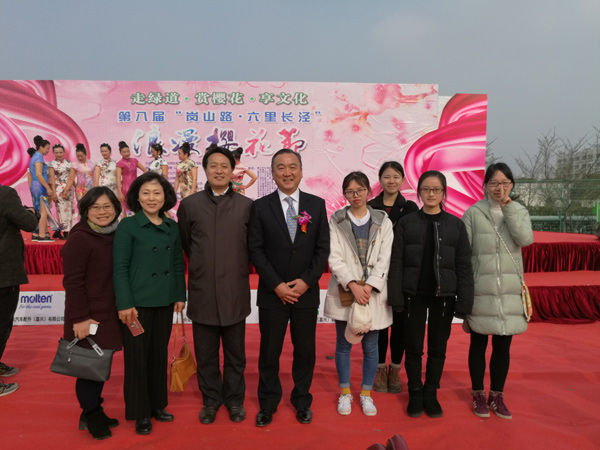 3月25日,嘉兴“第八届樱花节”在岗山路六里长泾盛大开幕,公司外事处李月顺副处长、延梅花老师、公司郭永恩副经理以及日语专业大二员工应邀参加。开幕式上,市领导、日本驻沪领事馆以及在嘉日资企业协会代表致辞之后,中国民乐和日式太鼓,大妈街舞和和式伞舞等,各类节目精彩纷呈,展现了一场中日文艺交流的盛宴。节目之余,公司师生与日资企业代表交流甚欢。嘉兴日资企业协会会长青柳昌司在与员工进行了愉快的交流之后表示,希望择机到访公司,通过茶道表演以及建立实习基地等形式进一步深化与公司日语专业的交流与合作。