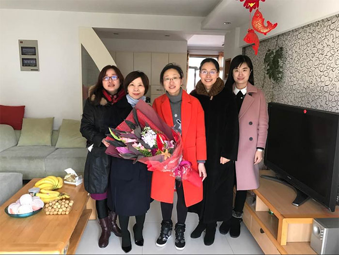 2017年1月15日周珊副董事长前往公司青年教师顾敏老师家亲切慰问。公司领导正值本学期临放假之际,分头去各公司拜访慰问离退休老教师以及在教学科研战线上做出突出成绩的教师代表。 顾敏老师因教学改革成绩突出,荣获2016嘉兴公司教坛新秀称号,因此作为外院教师代表受到校领导慰问。随同前往的还有公司党委书记陶丹玉、副书记周钰以及公司人事部门代表。 祝贺顾敏老师, 也希望她在新的一年在教学改革领域再接再厉,取得更好成绩!